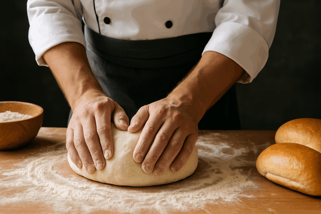 Um truque de chef é sempre trabalhar com ingredientes em temperatura ambiente, a não ser quando a receita pede o contrário. Isso ajuda a massa a se desenvolver de forma mais uniforme. Outro detalhe é a qualidade da farinha: opte por farinhas próprias para panificação, que têm maior teor de proteína e ajudam a formar uma rede de glúten mais consistente.